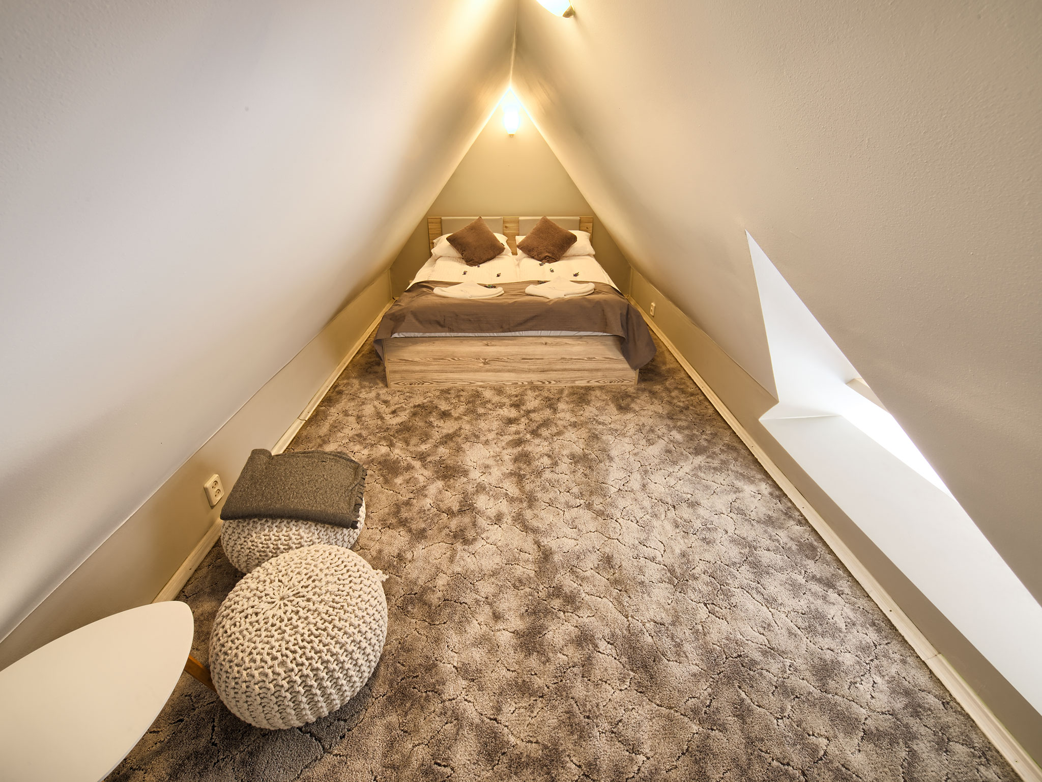 Sypialnia nr. 3 – łóżko małżeńskie, fotel.