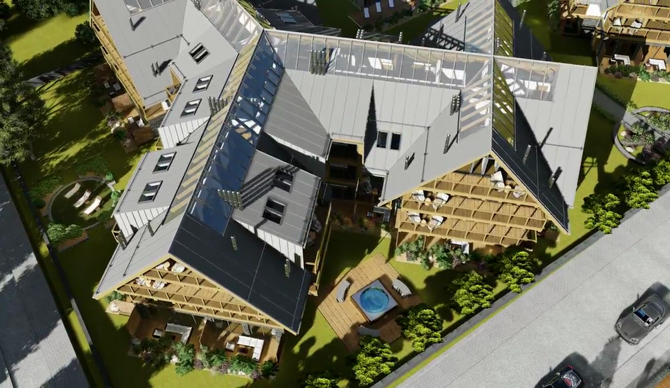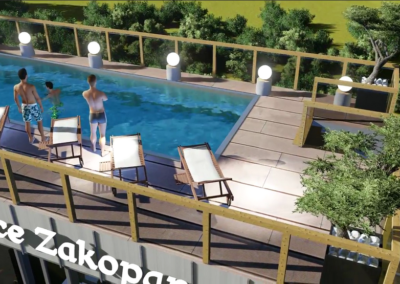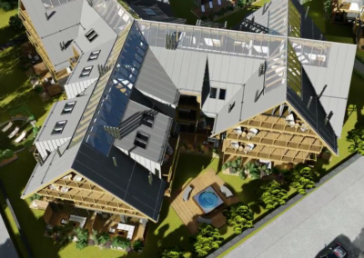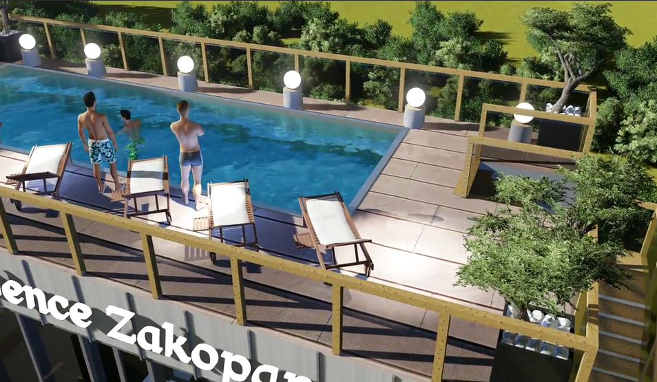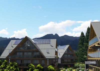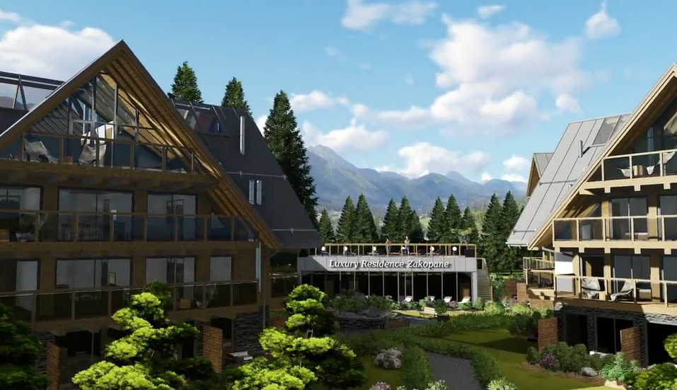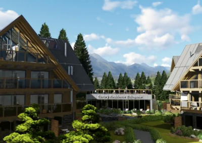 Kompleks luksusowych apartamentów Royal Resort jest nowo powstającą inwestycją mieszczącą się w samym sercu Zakopanego. Dzięki centralnej lokalizacji w niecałe 3 minuty można dojść do słynnego deptaka Krupówki a także do Wielkiej Krokwi. Z tarasów będzie można podziwiać przepiękną panoramę Tatr, a działka na której znajduje się inwestycja otoczona jest starodrzewiem, co zapewni ciszę i spokój. W skład Royal Resort będą wchodzić dwa budynki, zbudowane z najwyższej jakości materiałów. Połączenie szkła, kamienia i metalu, nada inwestycji prestiżowy wygląd nawiązujący do tradycyjnej, zakopiańskiej architektury. Budynki Royal Resort będą podzielone na 3 segmenty i będą liczyły 90 apartamentów. Dzięki dużym oknom oraz przesuwanym drzwiom balkonowym i tarasowym, każdy z apartamentów będzie doskonale doświetlony. Dodatkowo każdy z właścicieli będzie mógł zainstalować kominek, ponieważ mieszkania zaopatrzone będą w indywidualne kominy. Efektowności całego projektu nada strefa SPA, która będzie mieściła się w osobnym budynku. Duża powierzchnia pozwoli na budowę otwartego basenu, który będzie usytuowany na dachu z przeciw-falą na górnej kondygnacji. Zasilany będzie ciepłą wodą geotermalną, dzięki takiemu rozwiązaniu będzie można korzystać z basenu niezależnie od pory roku.