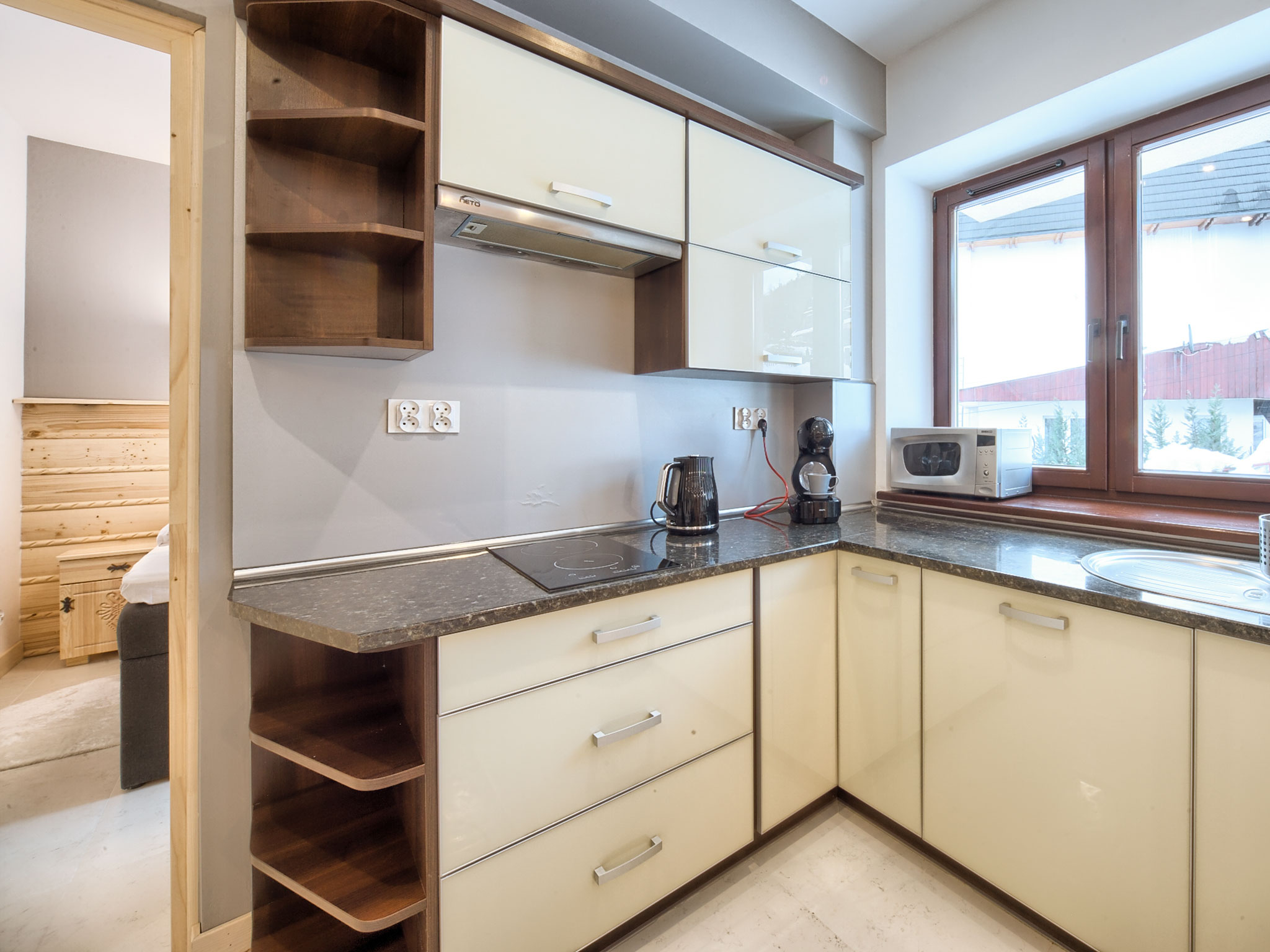Apartament Jodłowy zlokalizowany jest na Jaszczurówce w spokojnej i cichej części Zakopanego. Jest to idealny apartament dla fanów sportów zimowych, ponieważ apartament znajduję się w okolicy Nosala. W skład apartamentu wchodzą: salon z dwuosobową, rozkładaną sofą. W salonie również znajduję się stół z czterema krzesłami, fotel wypoczynkowy i biura z krzesłem. Aneks kuchenny jest w pełni wyposażony. Sypialnia wyposażona jest w bardzo wygodne łóżko małżeńskie i szafki nocne. Łazienka posiada bez progową kabinę prysznicową, umywalkę z lustrem i wc. Dla zmotoryzowanych Gości zostało przygotowane miejsce parkingowe.