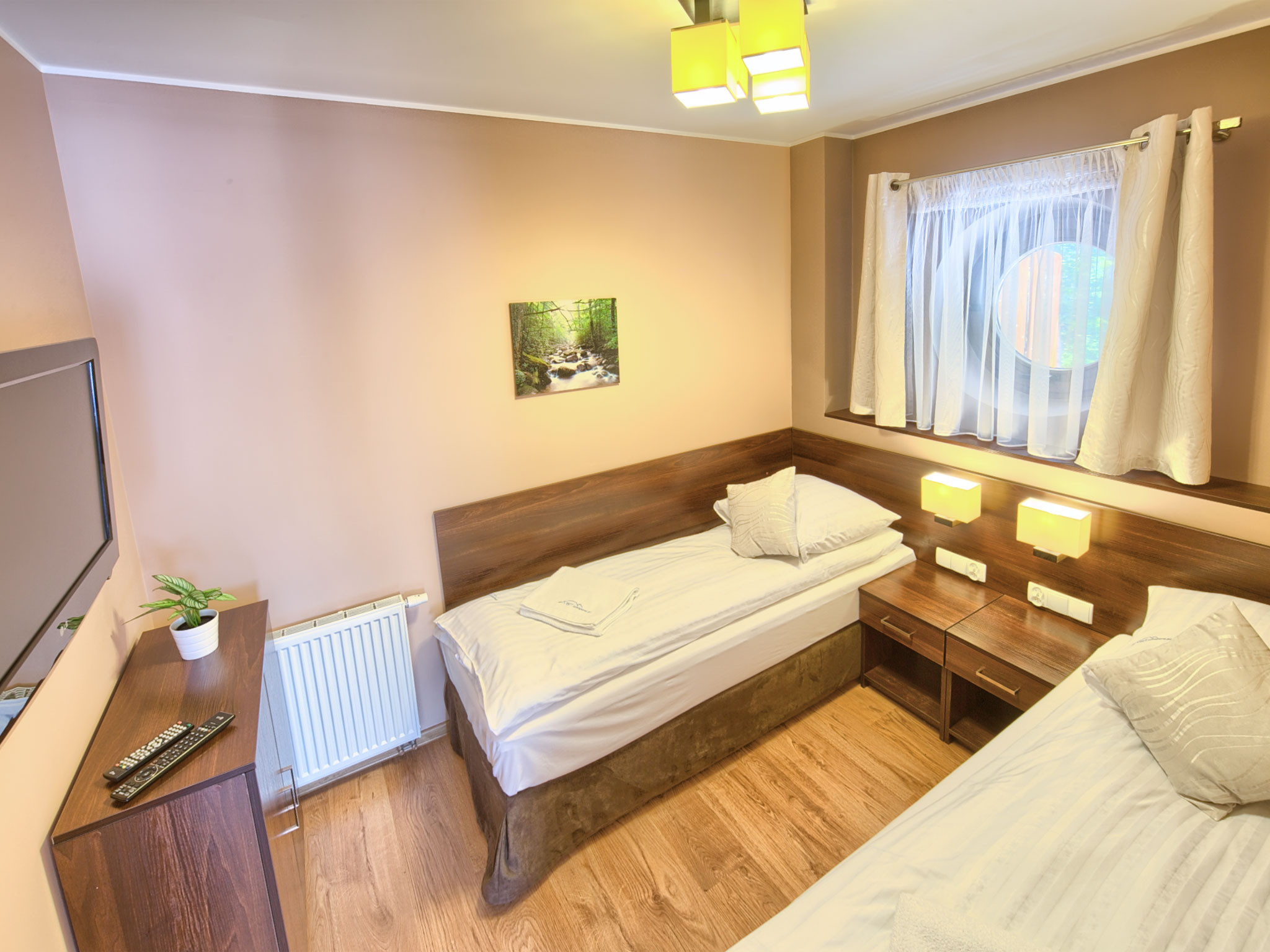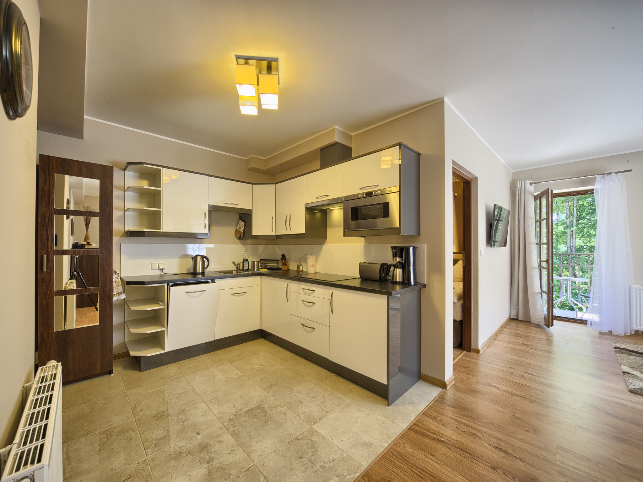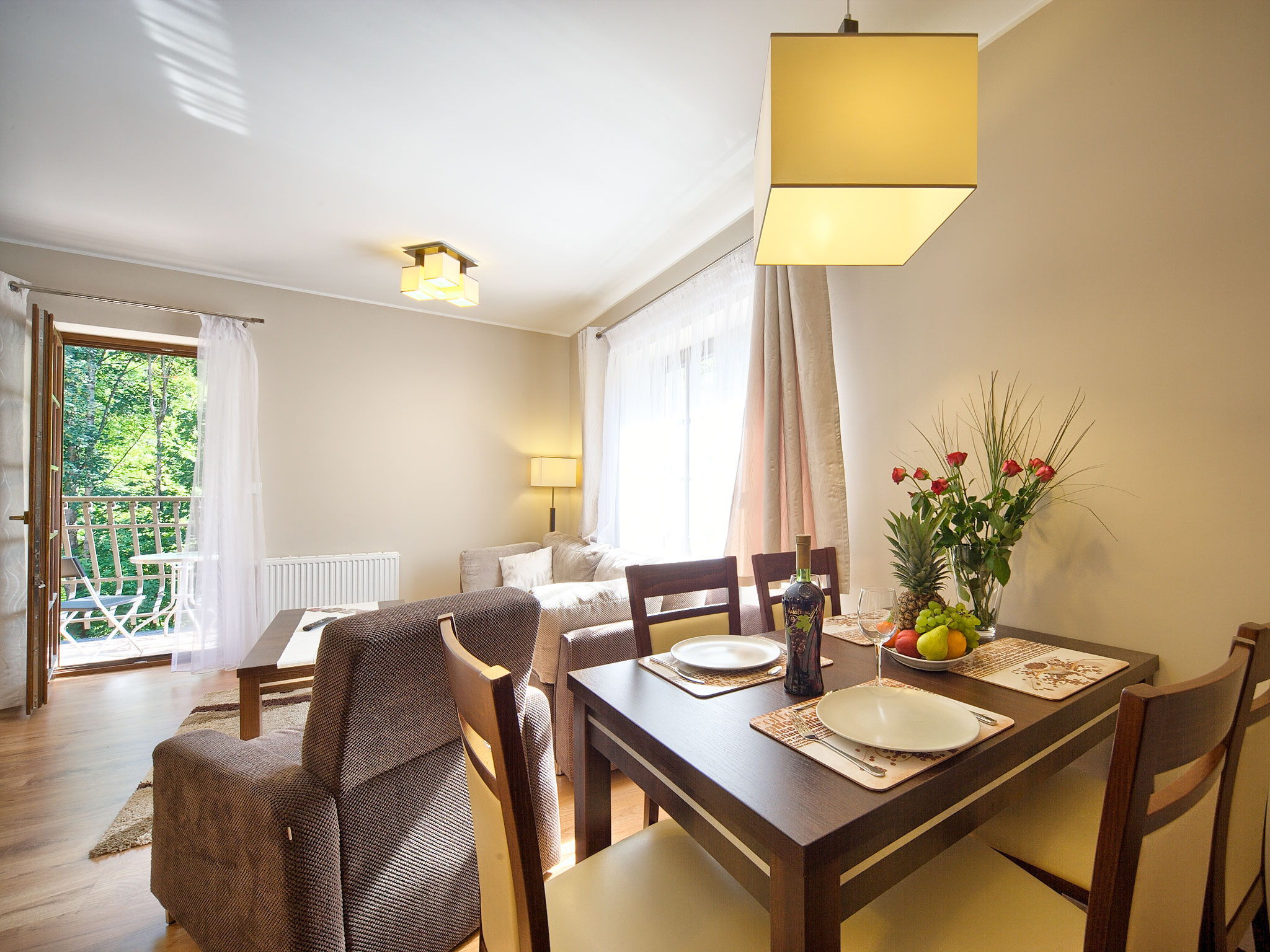 Apartament Dubaj zlokalizowany w centrum miasta, w niecałe 7 minut spacerem można dojść do słynnego deptaka czyli do Krupówek. Apartament składa się z przestronnego, słonecznego salonu, z którego jest bezpośrednie wyjście na balkon, dodatkowo jest aneks kuchenny w pełni wyposażony, gdzie samodzielnie Goście mogą przyrządzić sobie posiłek. W skład apartamentu wchodzą również dwie sypialnie, jedna z łożem małżeńskim, a druga z dwoma, pojedynczymi łóżkami, oprócz tego w apartamencie jest łazienka z kabiną prysznicową. Prze cały pobyt Goście mogą korzystać z darmowego WIFI.