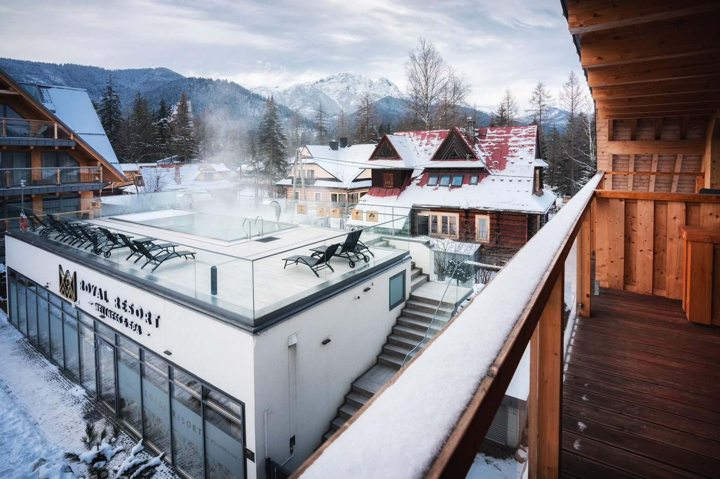 Najciekawszym rozwiązaniem jest nocleg w aparthotelu ze strefą SPA – np. Royal Resort SPA, który oprócz sauny suchej i mokrej oferuje całoroczny basen na dachu, podgrzewany wodą geotermalną. Dzięki temu wieczory w ciepłej wodzie spędzicie bez pośpiechu, podziwiając widok na tatry.